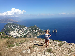 After an insane boat tour we climbed to Anacapri (the top of Capri) and enjoyed some Granita, this insanely good orange juice drink with optional vodka, which after the hike up the hill didn't seem so optional. Here's my roommates and I enjoying our drinks and spectacular view! Capri without Granita wouldn't be Capri at all! We also stopped for some lemonchello and chocolate tasting in a sandal shop. Not only did this store handmake beautiful sandals, but they handmade them for Jackie O!