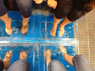 This was definitely the weirdest thing I've ever done and at first it was super awful but after fifteen minutes I totally swear by the fish pedicure! We headed back to our hostel to get ready for another day in London!